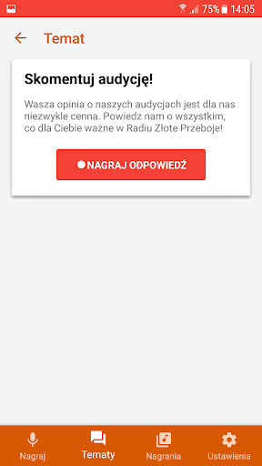 Microphone Radio Gold Przeboje - это приложение для слушателей радио GOLD PRZEBOJE, которое позволяет им записывать свои собственные заявления, комментарии и приложениями - и отправлять их с вашего смартфона непосредственно в редакцию нашего радио.