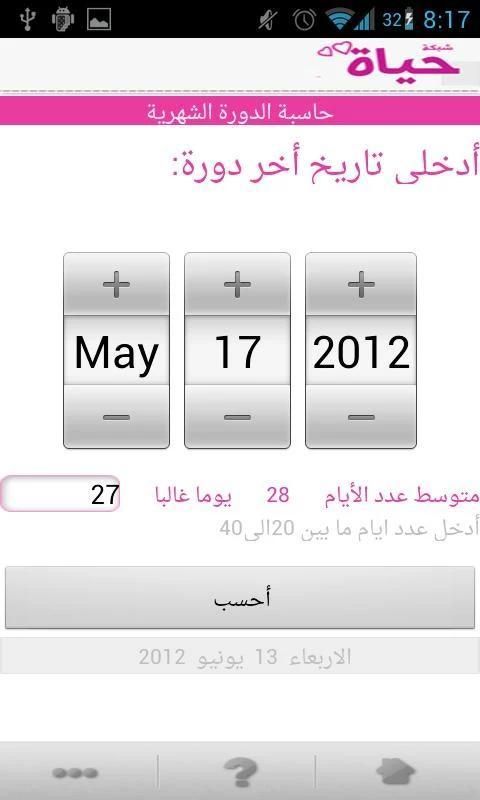 تطبيق يقوم بأعلامك بموعد الدورة الشهرية القادمة وتاريخها و بدقه عاليه كل ماعليك الان هو ادخل تاريخ اخر دورة ليخبرك بتاريخ الدورة القادمة و يستفاد منه كثيرا بتحديد ايام الحمل و الأمور الأخرى المتعلقة بالدورة الشهرية