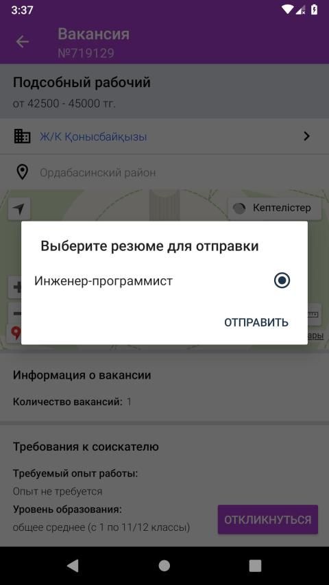 - Выполнить поиск работы с учетом города и наименования профессии;