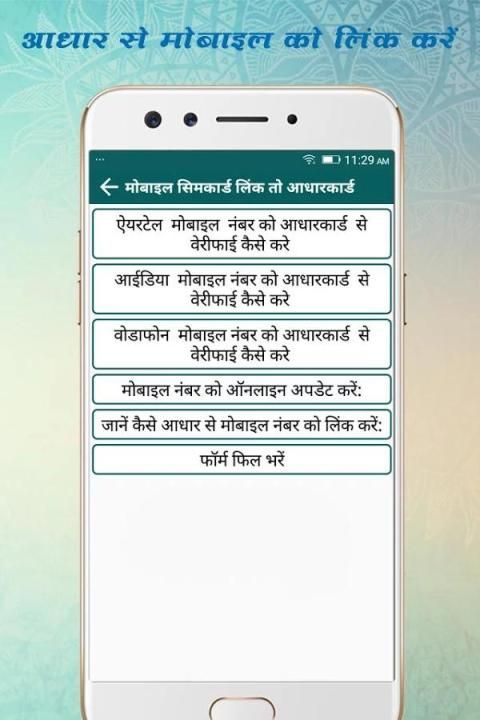 Загрузите наше приложение и начать связать свой мобильный номер с Aadhaar карты в течение нескольких секунд с телефона. Это бесплатный сервис и полностью безопасный. Это приложение Aadhaar Card Ссылка на номер мобильного помогает индийским пользователям предоплаченных телекоммуникационных найти номера для конкретных операций.