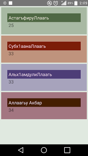 Простой и удобный интерфейс, 2 разных режима, русский и аварский языки, транскрипции арабских букв, уведомление по окончании чтения (звук и вибрация), переключение между словами и быстрый доступ к азкарам после намаза и вирдам Щазалийского тариката.