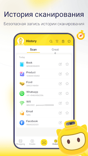 Запись всех отсканированных и созданных QR -кодов постоянно сохраняется, и список истории позволяет легко управлять и очищать историю посещаемых местоположений и QR -кодов.