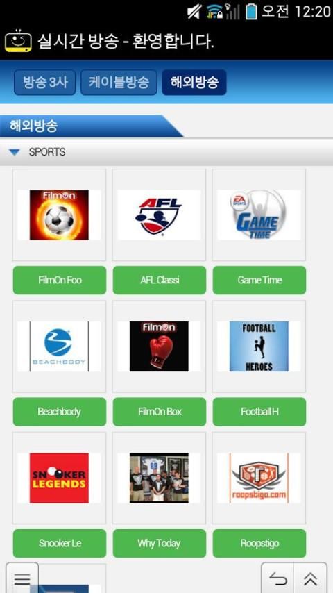 지상파, 케이블, 해외 케이블, 해외 스포츠