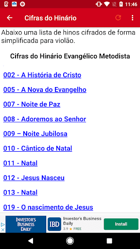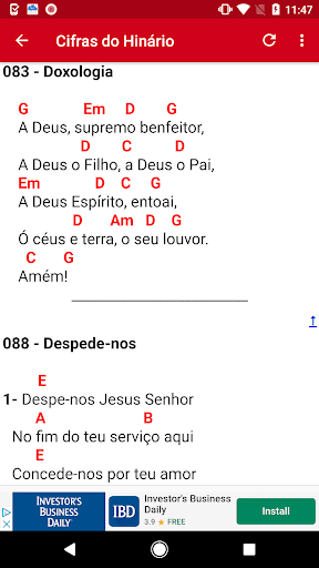OBS: o aplicativo se baseia no site www.hinarioevangelico.com, com todas as letras e cifras off line, mas algumas funções precisam de conexão à internet para serem exibidias.