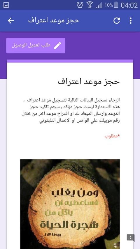 حجز الاعتراف اون لاين داخل التطبيق