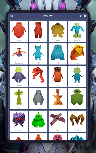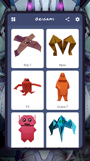 Без ума от игр с роботами и хотите сделать бумажные поделки своими руками? Тогда добро пожаловать в приложение «Оригами роботы – поделки из бумаги своими руками». Собери собственный гараж уникальных роботов и сокруши врага в битве!