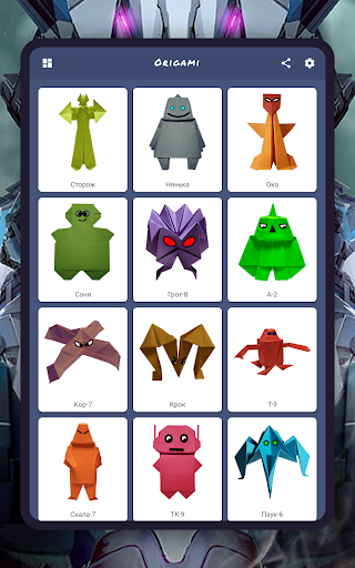 Мы любим оригами! Это приложение создано с одной целью – объединить людей во всём мире с помощью искусства оригами. Надеемся, что это приложение с пошаговыми уроками научит вас делать оригами роботов. Мы надеемся, что вы сможете удивить ваших друзей или родных необычными бумажными фигурками.