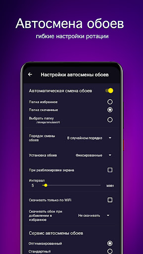 • Настройка качества обоев и превью, для экономии трафика