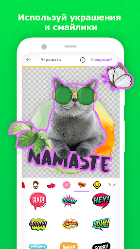 6️⃣ Добавляй крутые солнцезащитные очки к стикерам кошек, создай мем стикеры и многое другое! Теперь, когда твоя наклейка готова, используй ее в Ватсап сообщениях.