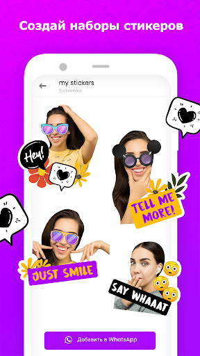 Создать стикеры для WhatsApp проще простого! Хочешь получить уникальные стикеры? С помощью Stickerz ты всегда можешь создавать свои личные стикеры и наборы стикеров. Преврати фото друзей в смешные мем-стикеры для крутых шуток в чате, которые понятны только вам.