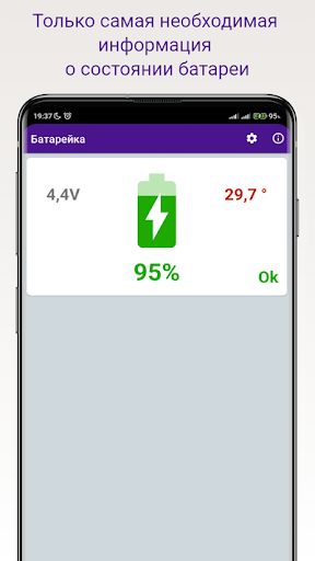 Виджет потребляет минимум энергии и не требует никаких дополнительных разрешений на телефоне. Единственная его функция состоит в том, чтобы точно и ясно показывать уровень заряда батареи вашего телефона.