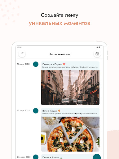 Запечатлей пережитые моменты, и добавляй собственные изображения или теги. Так ты создашь красивую хронологию твоих отношений, чтобы самые ✨особые✨ случаи 😉 никогда не были забыты.