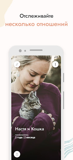 Ты хочешь сохранить несколько отношений? Пожалуйста. Просто добавь новые отношения на главную страницу приложения. Будь то с партнером по бизнесу, твоим котиком или лучшими друзьями. Так ты никогда не забудешь о важных моментах.