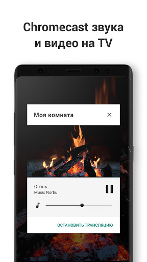 В приложении есть функция Chromecast. Вы сможете передавать на телевизор видео-заставку с природными фонами в высоком качестве. Теплый огонь камина со звуками потрескивающих дров, успокаивающий шум волн, стрекотание ночных цикад добавят домашней атмосфере уют и романтику.