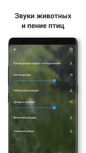 Для тех, кто хочет засыпать под прибой океана или журчание ручья, в приложении есть таймер.