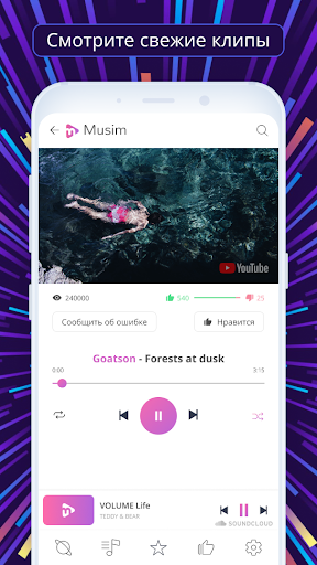 💫 Musim — ваш персональный мир онлайн музыки, а не просто хороший мп3 плеер 2020 года! ☝ При пользовании аудиоплеером важно помнить, что наше приложение — это неофициальный music player для воспроизведения видео и песен с YouTube. Мы не имеем прямого контроля над отображаемым контентом, а загрузка и кэширование видео недоступны в связи с соблюдением условий пользования YouTube.