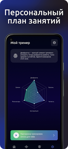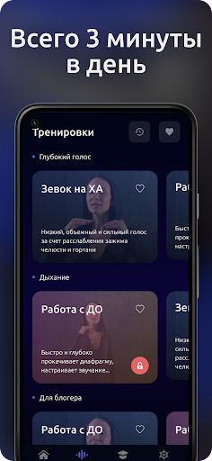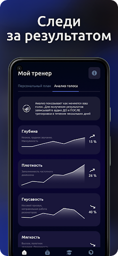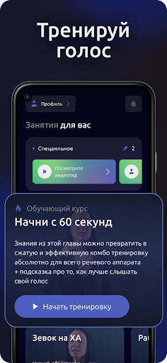Делайте запись своего голоса до и после тренировки, чтобы увидеть быстрый результат в прокачке вашего голоса, а нейросеть подберет вам индивидуальную программу. Если у вас будут вопросы, вы можете задать их в приложении и получить личный ответ от тренера. Приложение подходит как для мужчин, так и для женщин.