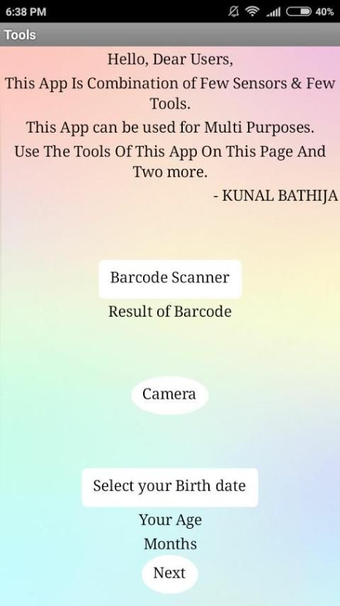 Это приложение является комбинацией из немногих датчиков и Tools.This приложение имеет