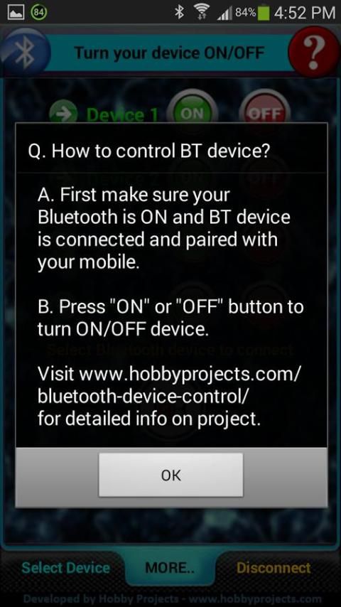 1. Во-первых убедитесь, что ваш HC-05 Модуль Bluetooth в паре с вашего мобильного телефона. По умолчанию пароль для спаривания "1234" или "0000". Проверьте руководство модуля Bluetooth.