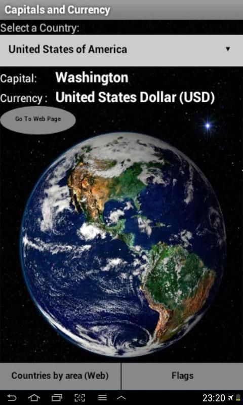 Это приложение предоставит Вам информацию о всех странах мира, их столицах и их валют с codes.Hope них являются точными, однако, в постоянно меняющемся мире сегодня трудно держать в курсе.