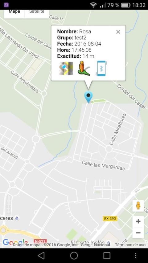 С карты Где ты? Вы можете выбрать другие члены группы и нажать на синий маркер, вы увидите имя, номер телефона, дату и время последнего обновления своей позиции и точности их координат. некоторые иконки, которые позволяют звонить (если вы настроили номер мобильного телефона), перейти в положение с помощью GPS, просмотреть свое местоположение с помощью Street View или отправить нажав на значок телефона, который появляется в правой стойки также появляются. Как всегда, все очень интуитивно.