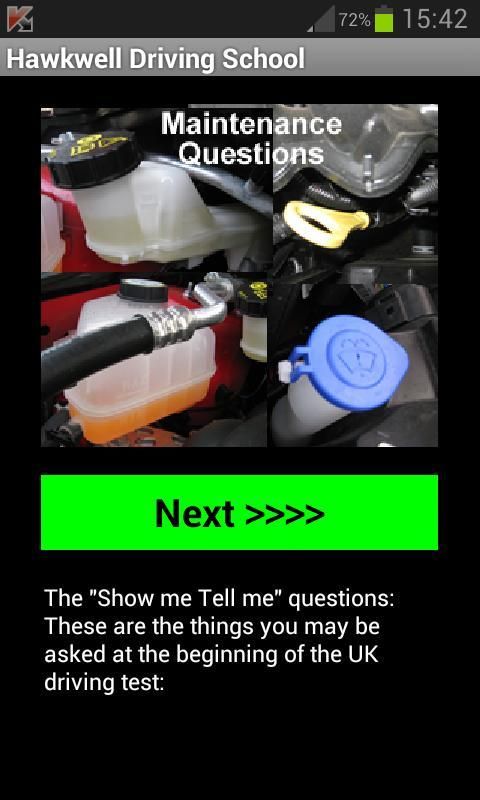 В начале вождение автомобиля теста Великобритании вам будет предложено два вопроса, касающиеся технического обслуживания, или, как использовать элементы управления вашего автомобиля. Неспособность ответить на один (или оба) из этих вопросов приведет к один несовершеннолетний вождения вину на тестовой листа вождения.