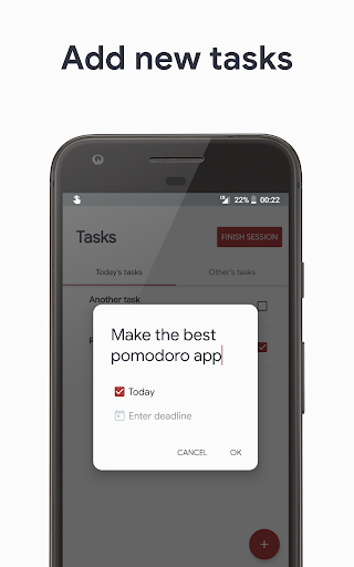 > Добавляйте их в список «Сегодняшние задачи» и нажимайте на любую задачу и Вам откроется таймер, с которым можно работать по технике помидора. С каждым выполненным помидором вы приближаетесь к заданной цели