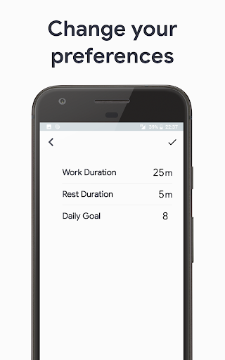 > Настройки времени работы и отдыха, а также цели на сегодня можно менять на свой вкус