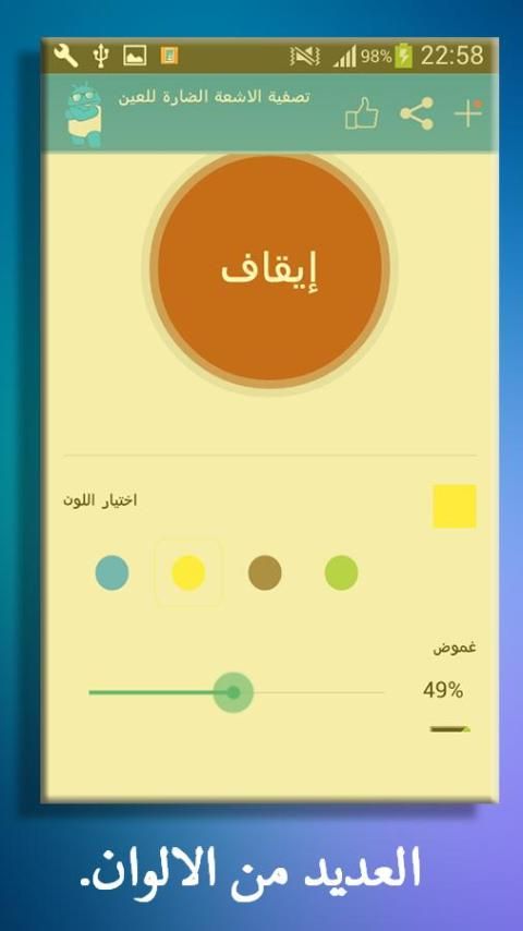Вы чувствуете себя некомфортно на ваших глазах, когда вы используете смартфон в течение длительного времени? Скажи это с более дружелюбным к новому применению средств защиты глаз для Android, которая работает, чтобы отфильтровать вредные лучи вызвано синим светом на смартфоне вызывает напряжение глаз. Синий свет вреден свет, который вызывает повреждение сетчатки и удерживает вас от сна в ночное время, или даже причиной бессонницы и расстройства сна. Синий свет также может привести к близоруким или катаракта, если вы используете смартфон все время.