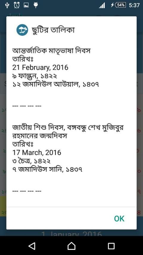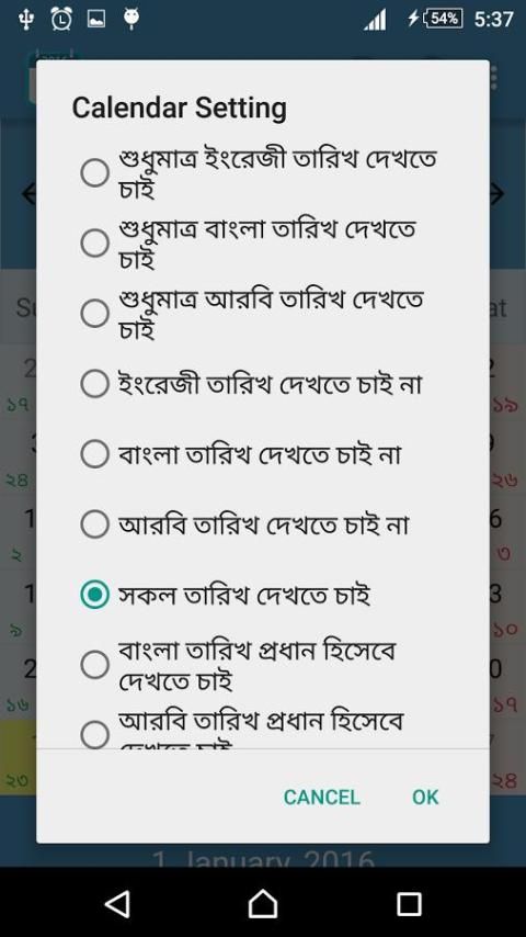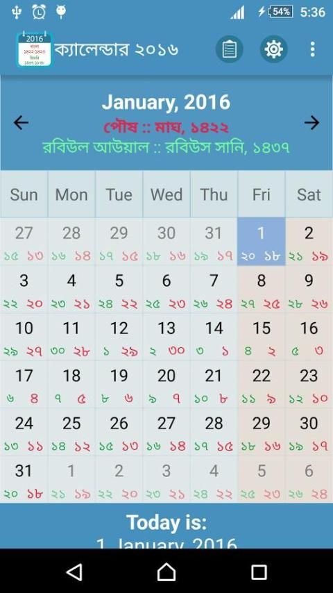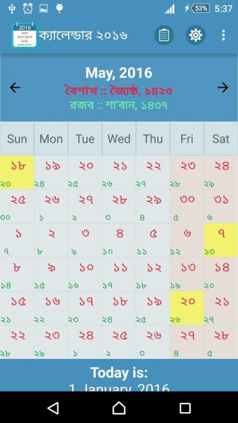Мы предлагаем эту полезную приложение календаря, чтобы отпраздновать Новый год 2016 Есть три календари бок о бок: григорианский календарь (на английском языке), бенгальский Календарь и по хиджре (арабский) Календарь. Есть варианты, чтобы выбрать дату, которая вы хотите увидеть и в каком порядке вы хотите увидеть.
