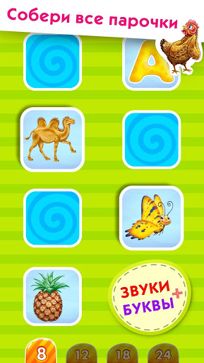 Парочки - нужно перевернуть две одинаковые карточки для детей. Учим букварь, учимся читать. Игра со звуками. Учим звуки животных для детей, звуки птиц, звуки природы для малышей, как говорят животные для малышей.
