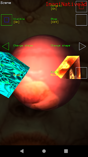 Если вы хотите использовать в программе свои текстуры и 3D модели,то загрузите текстуры в формате PNG или JPG в каталог SD карты **ImagiNative3D/textures**, а 3D модели в формате OBJ с одной текстурой в каталог **ImagiNative3D/model**.