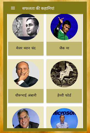 Inspiring Success Stories (सफलता की कहानियां) Application present motivated and inspirational success stories of famous great people of India and World in Hindi Language.