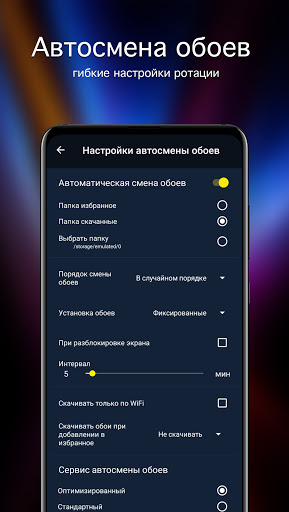 • Настройка качества обоев и превью, для экономии трафика