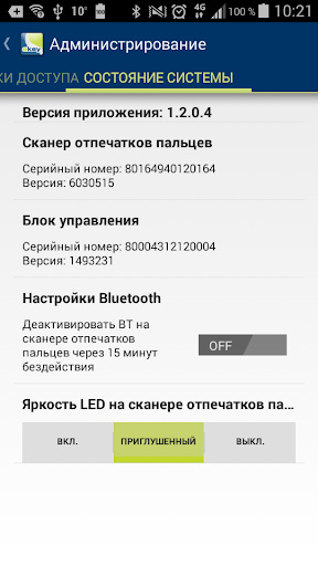 - Активация/деактивация Bluetooth на сканере отпечатков пальцев