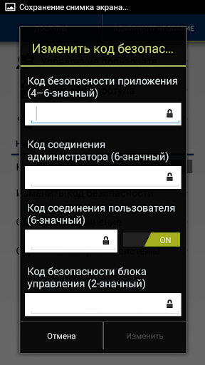 - Ввод или изменение кода безопасности