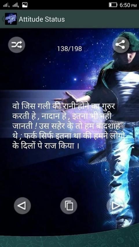 Attitude Status app is a great status application having various categories like Hindi,English and Other.