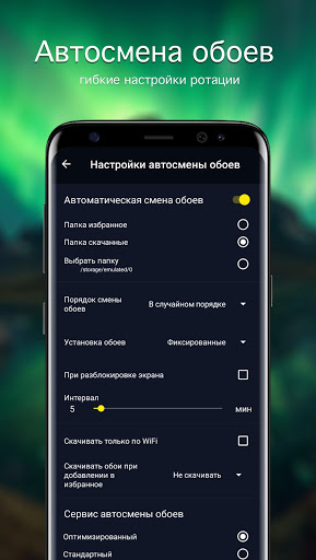 • Автоматическая смена заставки с заданным интервалом (живые обои северное сияние)