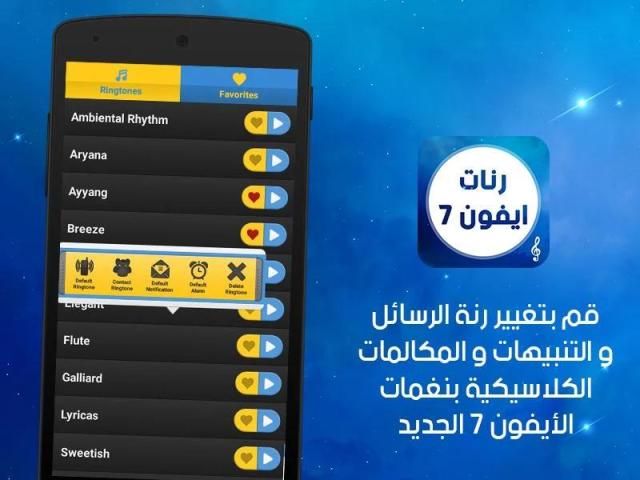 тона Применение Ивонна 7 дает широкий диапазон тонов и тонов Ивонна 7, в том числе мелодии грустный, романтичный и мелодии, мелодии турецкой, индийской музыки, композитор, турецкие тона без Сети, религиозные кольца. Вы можете настроить приложение из лязг сообщений и оповещения о таких Alwatsab или Vyibr, дискриминация звоном телефона, восстановление разделов колец и запускается автоматически, как приведения в действие без Интернета.