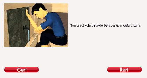 Bu uygulama abdestin alınışını adım adım resimlerle anlatmaktadır.