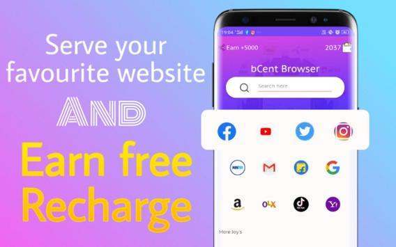 bCent browser is only app that's provide you free Recharge's and Many data plans, Rewards Simple browsing your needy website and earn Recharge