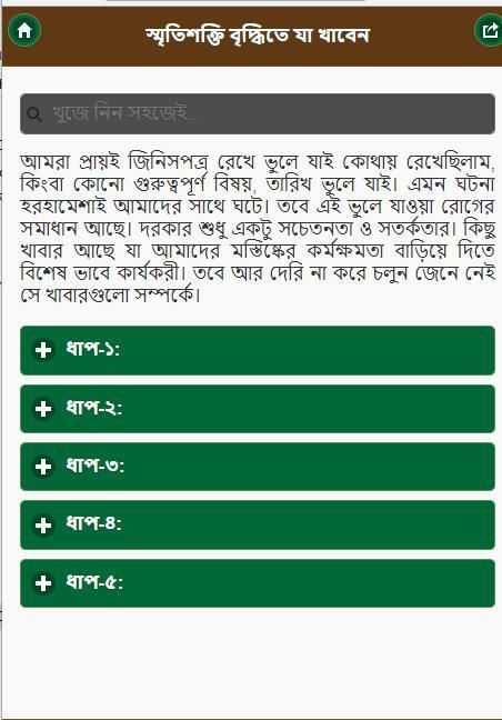 স্মৃতিশক্তি বৃদ্ধিতে যে খাবার গুলো সকলের জন্য উপকারে আসে তার বিস্তারিত বর্ণনা দিয়ে অ্যাপসটি তৈরি.