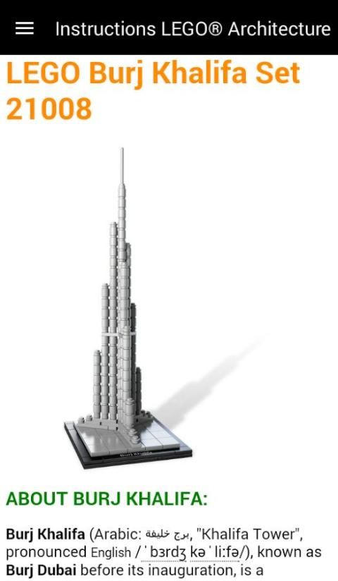 Построить удивительные здания & достопримечательности, используя LEGO® кирпичи, с помощью этого приложения вы можете найти все LEGO® Architecture устанавливает инструкции и аккуратно категоризированных с дополнительной информацией и фотографиями для каждого здания.