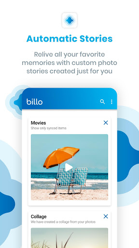 Automatic Stories: Billo creates automatic stories, collages and videos so you can share them easily with family and friends.