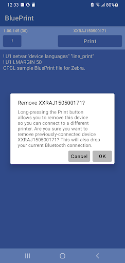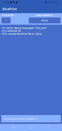 Blueprint предназначен для управления соединением и связи между вашим приложением и любым принтером Bluetooth.Легко подключить и отправлять команды к принтерам Bluetooth от JavaScript, HTML и Java, используя стандартные намерения Android.Примеры использования Blueprint включены в экран справки приложения.