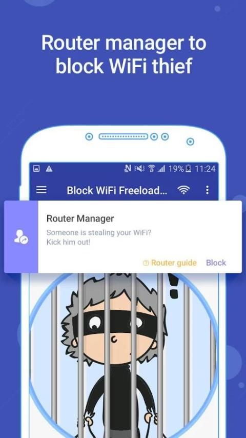 Блок WiFi Freeloader представляет собой простой и бесплатный инструмент для сети, чтобы помочь вам WiFi сканирования, показать все устройства, подключенные к Wi-Fi, видеть, кто находится на моем Wi-Fi, а также блокировать странное устройство в странице администратора маршрутизатора или в один клик.