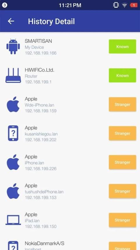 ★ Показать детали подключенных устройств (IP / MAC-адрес / имя устройства / и т.д.), просто чтобы отметить соединительные устройства, как «Known» или «Незнакомка».