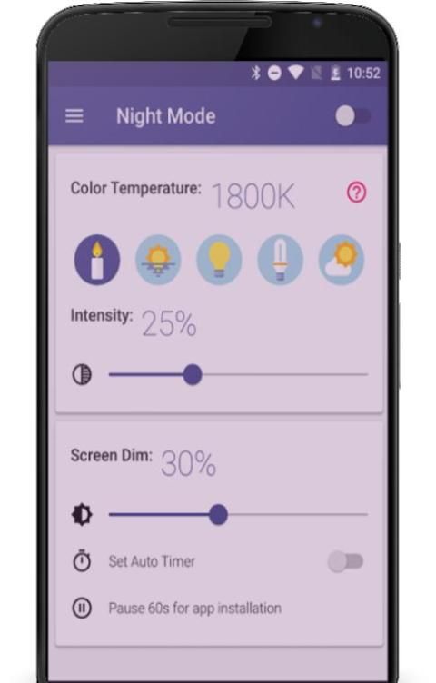 Ночной режим построен, чтобы уменьшить синий свет. Все, что вам нужно перейти на ночной режим в приложении. Вы также можете настроить цветовую температуру, синий интенсивность света фильтра и экран диммер, чтобы приспособиться к вашим глазам. Ночной режим является хорошим защитником глаз.