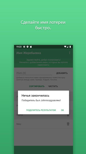 С помощью этого приложения вы можете просто, легко и быстро делать лотереи с именами через безопасную и легкую систему!