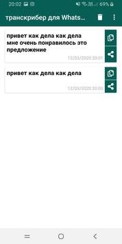 Работа приложения очень проста. Просто выберите и поделитесь аудио. На экране обмена выберите транскрибер для WhatsApp и все готово! Аудио будет транскрибировано, и вы можете читать, копировать или делиться им где угодно.